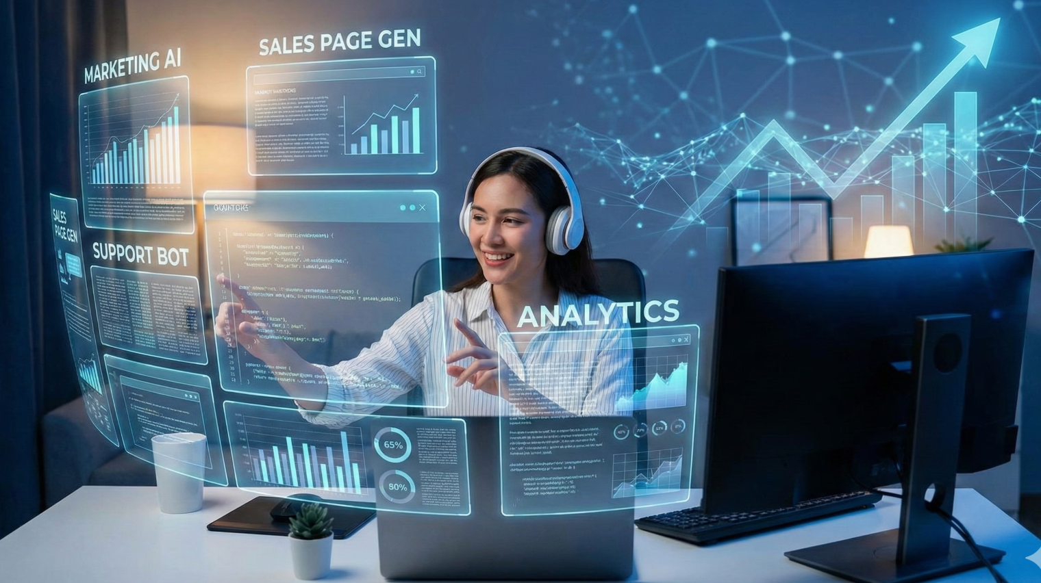 - Tự động hóa tác vụ lặp lại: Chatbot trả lời FAQ khách hàng, AI viết email/báo cáo/marketing content, tự động nhập liệu hoặc tóm tắt cuộc họp.