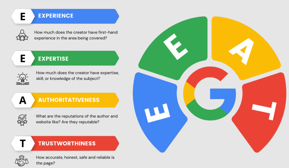 Mô hình E-E-A-T (Experience, Expertise, Authoritativeness, Trustworthiness) là một khung đánh giá chất lượng nội dung của Google, được sử dụng bởi các đánh giá viên chất lượng tìm kiếm (Search Quality Raters) để đánh giá mức độ đáng tin cậy và chất lượng của một trang web.